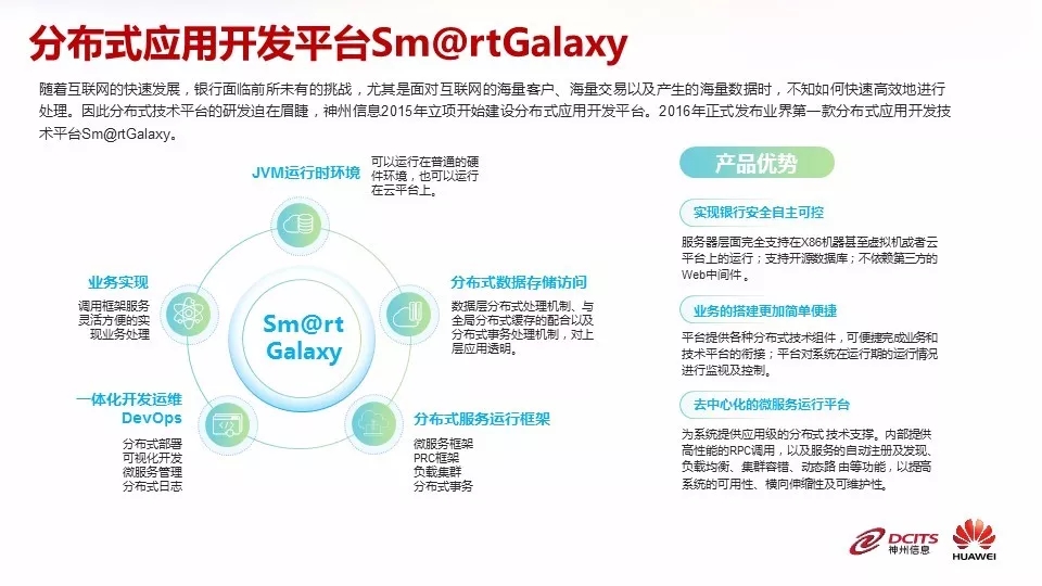 BB贝博艾弗森官网持续进行应用软件创新,推进金融行业的自主可控。2016年率先发布了分布式技术平台Sm@rtGalaxy和“新一代分布式银行核心系统”,并推出分布式架构,银行核心系统已连续六年市场占有率第一。其中,BB贝博艾弗森官网分布式技术平台Sm@rtGalaxy,可适配各类操作系统及CPU,为架构底层的自主可控创造了非常好的条件。分布式架构以分布式计算框架和分布式数据存储为基础,支持大规模、突发性、高并发场景,可扩展,快速支撑业务创新,降低成本。构建基于分布式架构的银行IT系统是银行数字化转型升级的必然选择,符合国家信息系统安全可控的整体发展要求,符合金融监管部门对信息安全可控的中长期战略。