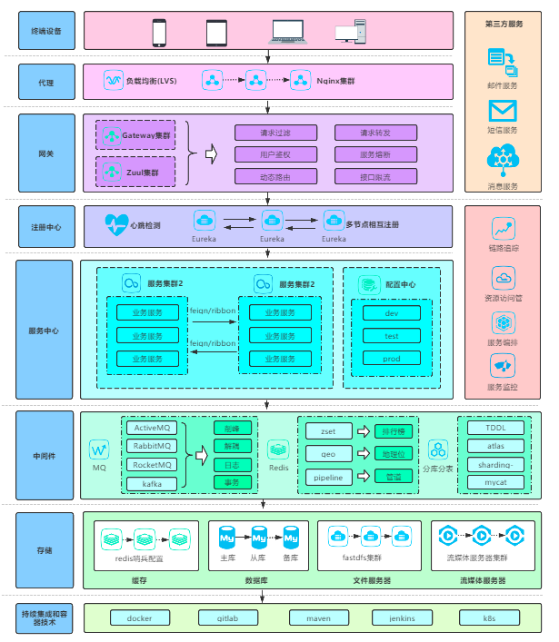 ● 容器化管理:基于 Kubernetes 或容器云平台进行服务容器的管理。