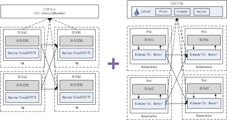 然而两种框架并存时,如何服务间互通,统一治理?