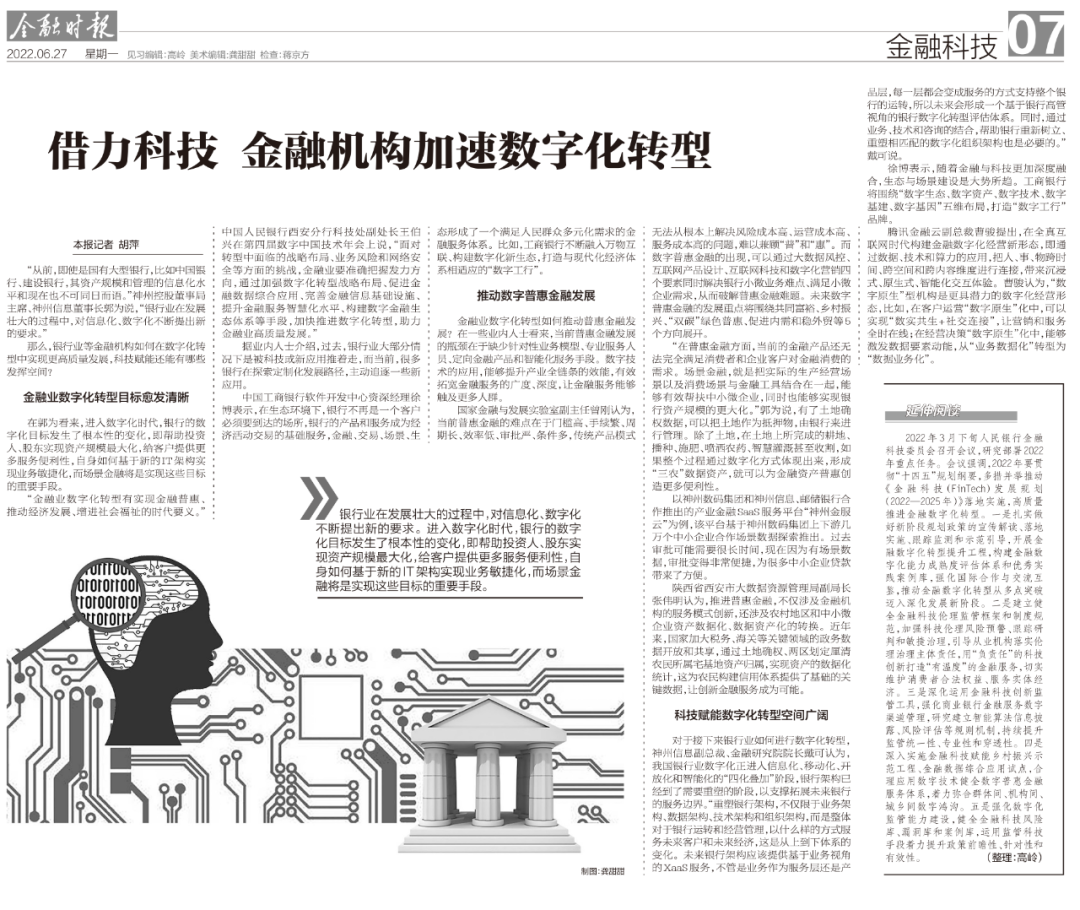 “金融业数字化转型有实现金融普惠、推动经济发展、增进社会福祉的时代要义。”中国人民银行西安分行科技处副处长王伯兴在第四届数字中国技术年会上说,“面对转型中面临的战略布局、业务风险和网络安全等方面的挑战,金融业要准确把握发力方向,通过加强数字化转型战略布局、促进金融数据综合应用、完善金融信息基础设施、提升金融服务智慧化水平、构建数字金融生态体系等手段,加快推进数字化转型,助力金融业高质量发展。”