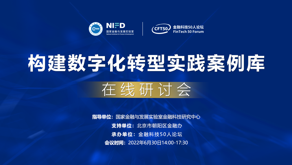 6月30日,备受关注的“构建数字化转型实践案例库研讨会”成功在线举办。来自政府部门、高校智库、行业协会、研究院所及市场一线金融机构及科技企业代表出席并发言。本次研讨会由国家金融与发展实验室金融科技研究中心学术指导,北京市朝阳区金融办作为支持单位,金融科技50人论坛承办。