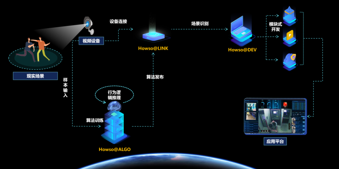 BB贝博艾弗森官网自主研发的Howso@ALGO、Howso@LINK和Howso@DEV机器视觉相关产品,可将银行监控场景中视频和图像的非结构化数据进行结构化处理,在监控告警应用平台进行数字化分析和呈现。其中,Howso@ALGO是一款AI机器视觉深度学习开放平台,它集深度学习核心框架、样本标注工具、算法训练组件及发布平台为一体,实现一站式样本标注、算法训练、服务发布。Howso@ALGO发布的机器视觉算法发布后在Howso@LINK运行。Howso@LINK让“视频设备拥有智能、不止于看见”,解决视频设备快速接入和智能识别问题,输出告警信息。Howso@DEV是一款低代码开发平台,将识别到的告警信息,快速搭建告警应用平台。